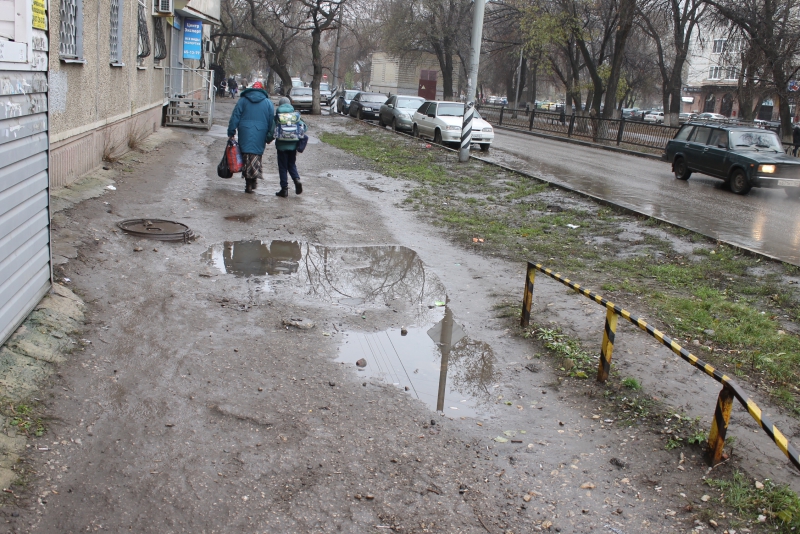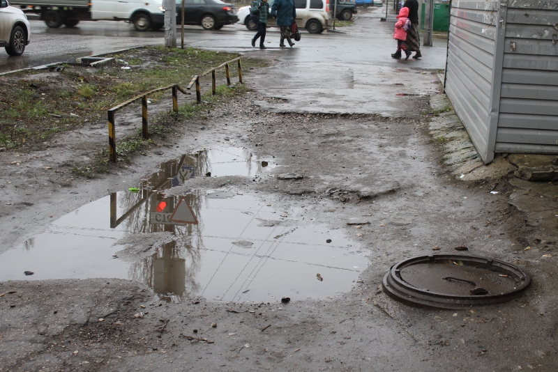 Асфальтовое покрытие пешеходной дорожки на Рахова, у дома №289 по Большой Горной, основательно разрушено. В дождливую погоду в образовавшихся здесь ямах собирается вода. Обойти глубокие лужи можно вдоль стены дома. Но и тут саратовцев встречает препятствие в виде не внушающего никакого доверия люка, накрытого перекошенной крышкой неподходящего размера. Поэтому для преодоления этого участка пути многие предпочитают тропинку, протоптанную по грязи газона. А какими последствиями грозит неосторожному пешеходу попадание в подобный колодец, например, в темное время суток, представить несложно.