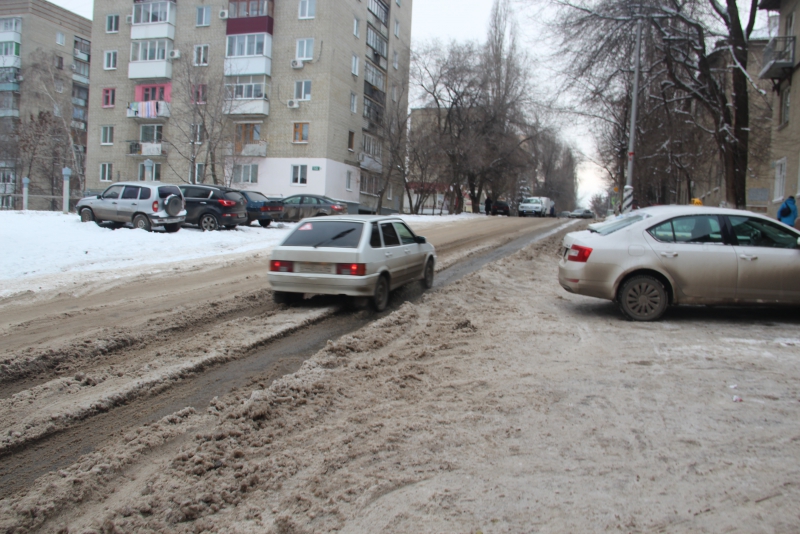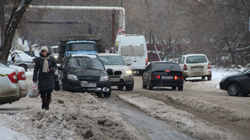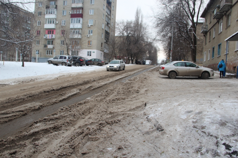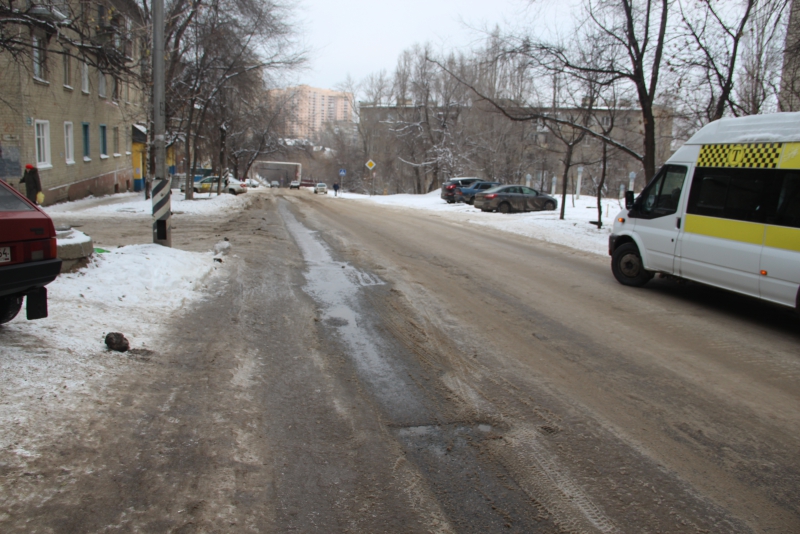 Ручей течет по проезжей части до пересечения с улицей Саперной, превращаясь в ледяную кашу. Многочисленные автомобили и маршрутные такси вынуждены штурмовать обледеневший подъем, рискуя на узкой дороге угодить в дорожно-транспортное происшествие.