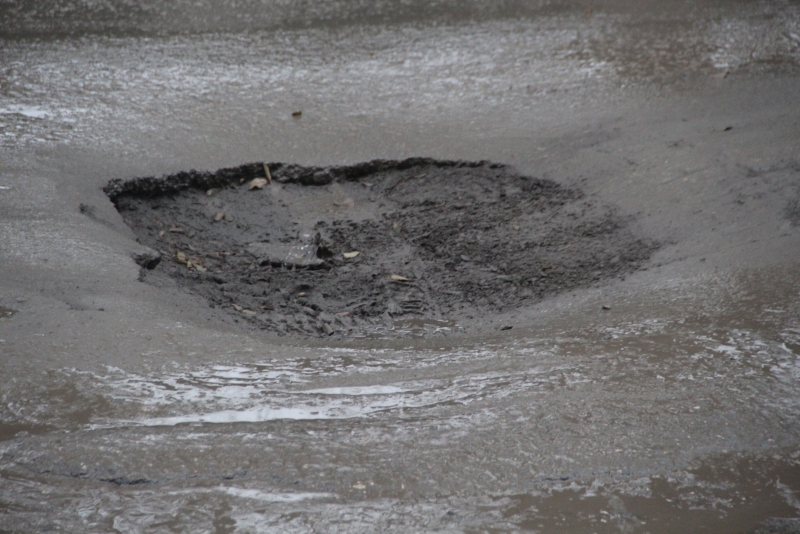 По продолжающейся деформации дорожного покрытия можно предположить, что основание дороги существенно повреждено. Когда аварийный участок приведут в нормативное состояние, неизвестно, но продолжающаяся отсыпка провала инертным материалом создает лишь иллюзию безопасного проезда.