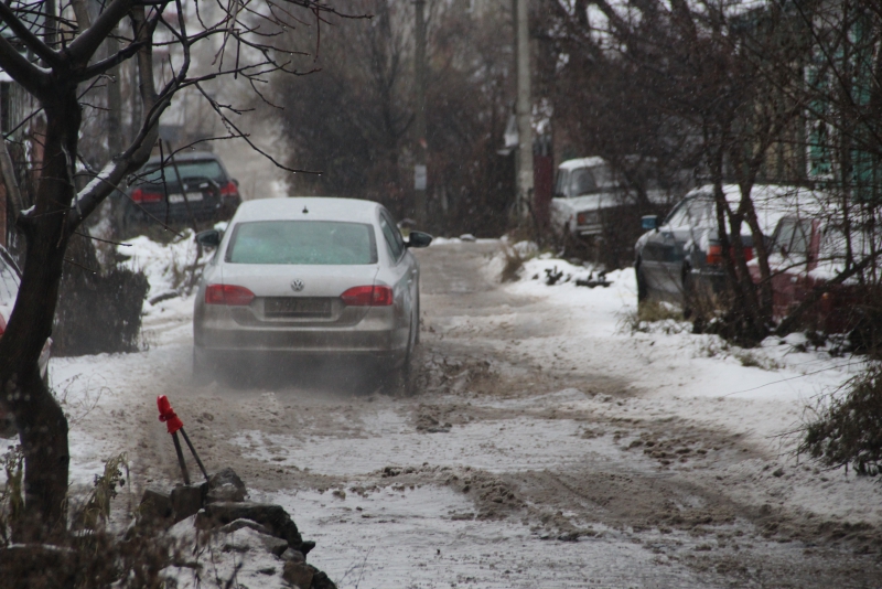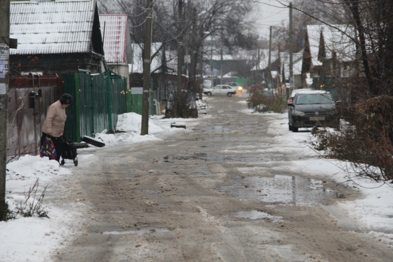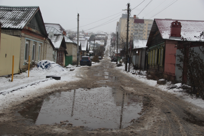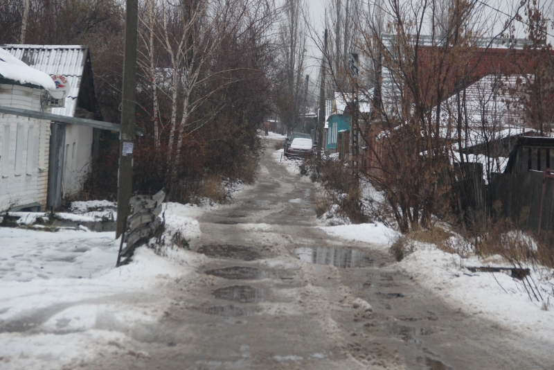 Многоэтажные дома появились внутри частного сектора Октябрьского поселка пять лет назад, и многие местные жители надеялись, что в скором времени появятся и дороги вместо традиционных грунтовок. Но за прошедшее время организацией благоустройства так никто и не занялся. Старые грунтовые дороги не справились со значительно возросшим трафиком и пришли в полную негодность, превратившись в череду ям и провалов, наполняющихся водой после первого дождя или оттепели.