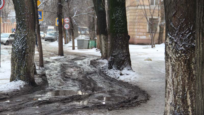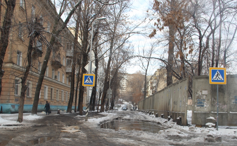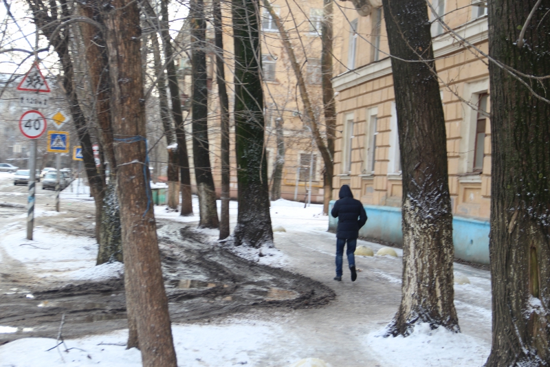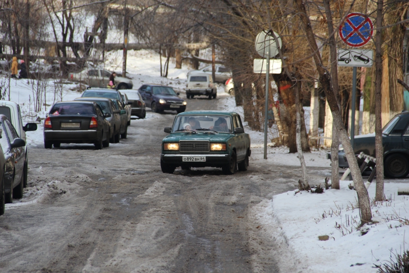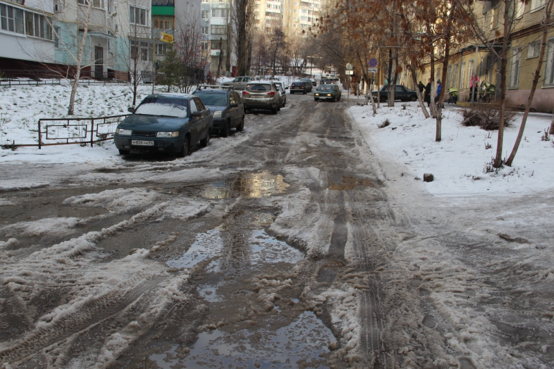 Подъехать по Ламповой к 5-й Детской поликлиники со стороны улицы Студеной также не очень просто. Из-за постоянных коммунальных аварий проезжая часть покрыта наледью, которую так и не удалось счистить дорожникам. Затрудняют движение по идущей под уклон дороге и многочисленные припаркованные автомобили местных жителей и родителей пациентов поликлиники.