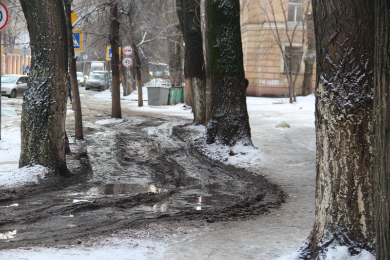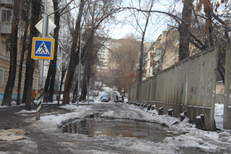 Наступившая оттепель затопила проезжую часть улицы Ламповой в Ленинском районе Саратова, между улицами Осенней и 5-й Детской поликлинникой.