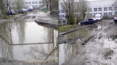 Наиболее тяжелая ситуация сложилась на внутриквартальной дороге от детского садика №158 в сторону улицы Академика Антонова. Широкая лужа перекрывает полностью проезжую часть и тротуар у дома №33а по Академика Антонова, рядом со входом в школу №55. Пешеходы вынуждены не только аккуратно передвигаться из-за повсеместного гололеда, но и рискуют в любой момент быть обрызганными проезжающими автомобилями, угодившими в очередную глубокую яму.