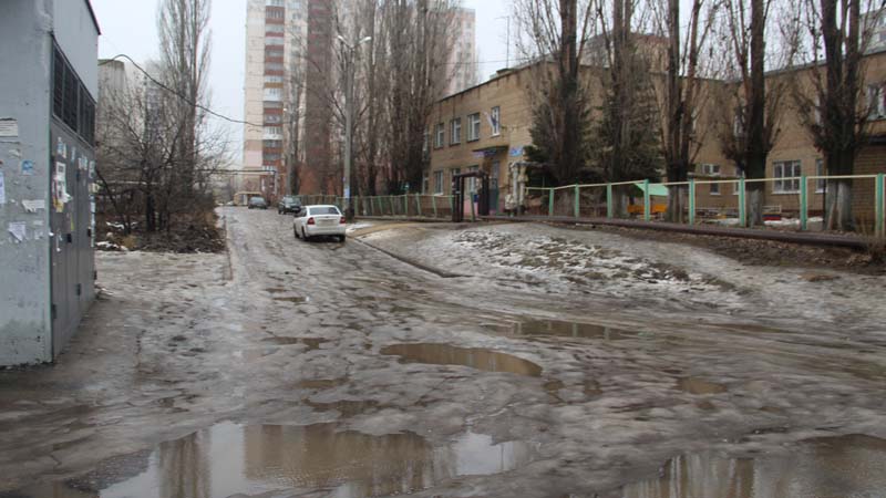 Еще в прошлом году «Дорожный контроль» сообщал о бездорожье, в которое превратились внутриквартальные дороги домов на Днепропетровской. Зимой же ситуация лишь усугубляется, в выбоинах во время оттепели скапливает вода, а края ям покрываются ледяными бордюрами, что значительно увеличивает глубину препятствий, преодолеть которые рискуют не многие водители.