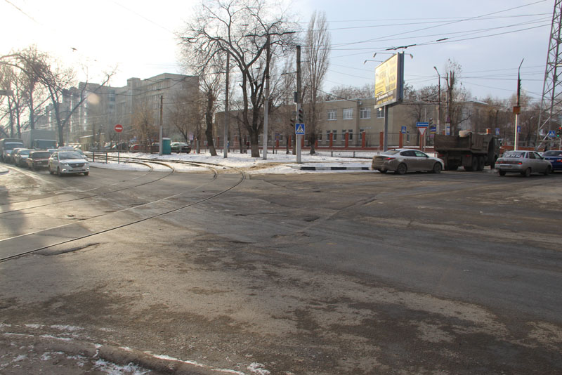 На пересечении улиц Новоузенской и Большой Садовой образовалась глубокая просадка, затрудняющая проезд автотранспорта.
