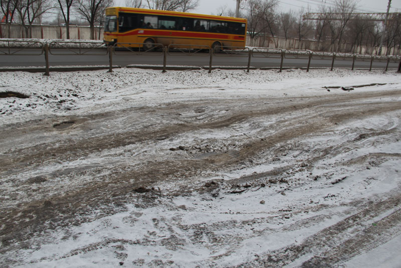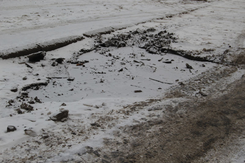 В прошлом году «Дорожный контроль» уже обращал внимание на эту дорогу с разрушенным твердым покрытием и в многочисленных раскопах. За прошедшее время состояние проезда не изменилось в лучшую сторону. Восстановить твердое покрытие и устранить ямы так никто и не удосужился. Только благодаря наступившим морозам водители могут ехать по условно твердому покрытию, а выпавший снег прикрыл грязь, которая стала постоянным спутником малой дороги Московоского шоссе. Во время же оттепелей и после дождя ямы превращаются в огромные лужи, которые не только мешают проезду автомобилистов, но и заставляют проявлять чудеса эквилибристики пешеходов, идущих по единственной дороге к жилым домам.