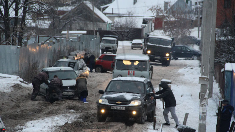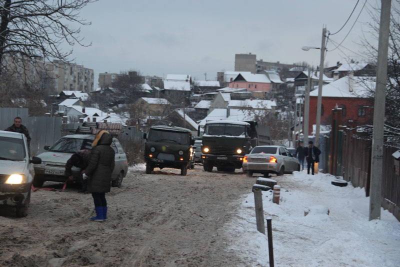 Попытки преодолеть многочисленные препятствия для многих водителей заканчиваются неудачно, машины застревают, ломаются, перекрывая и без того узкую дорогу, из-за чего следующим приходится ехать по еще более трудным участкам. Из-за высоких ледяных надолбов участок улицы Курдюмской между улицами Суворова и 3-м Курдюмским тупиком в часы пик превращается в хаотичное нагромождение автомобилей, многие из которых уже не могут выбраться самостоятельно.