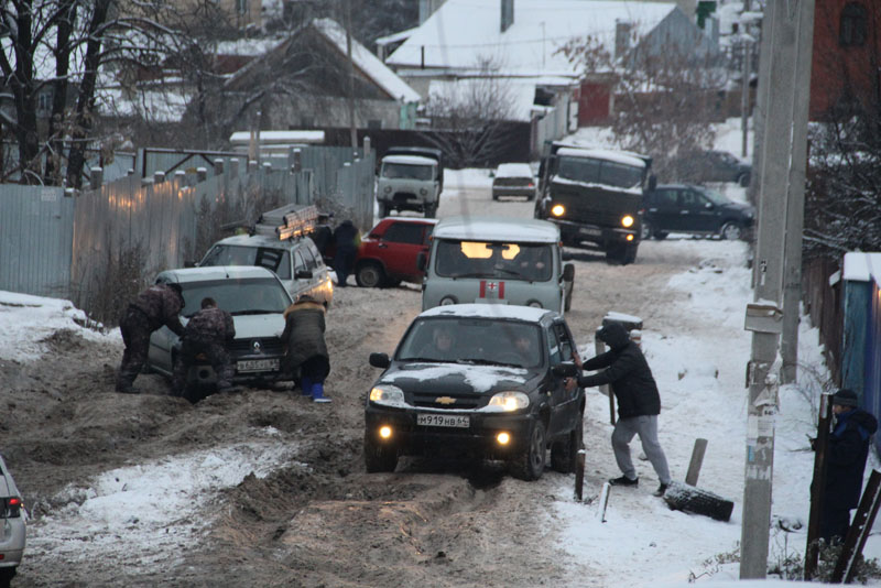 Автомобильный хаос, творящийся на Курдюмской, довелось наблюдать сотруднику «Дорожного контроля». Даже полноприводные автомобили буксовали и цепляли днищем ледяные надолбы, преодолеть которые не смогли отличающиеся высоким клиренсом рено и лады. Благополучно преодолеть ледяное поле удалось только КамАЗу, многим же водителям легковых автомобилей пришлось развернутся и вернутся к стоянию в пробке на проспекте 50 лет Октября. Порадовала взаимовыручка водителей, дружно вызволяющих застрявшие автомобили.