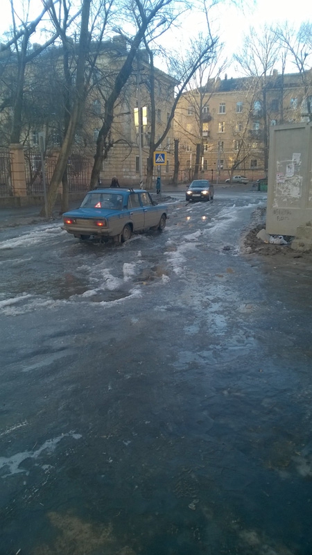 О сложившейся здесь непростой ситуации мы сообщали в минувшем декабре, но устранить течь и восстановить безопасность проезда за месяц не удалось. «На участке улицы Ламповой от Студеной до Осенней большое скопления льда. Подьехать к детской поликлинике №5 возможно только через тротуар», - сообщил Василий. Альтернативных путей подъезда к объекту здравоохранения просто не существует. Водители вынуждены ехать по обледеневшей дороге с глубокими колеями, либо использовать зеленые зоны и тротуары для проезда.