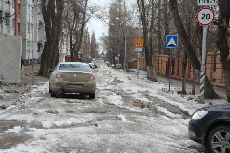 В минувший вторник «Дорожный контроль» сообщал об обледеневших из-за коммунальной аварии проезжих частей улиц Ламповой и Осенней в Ленинском районе Саратова.