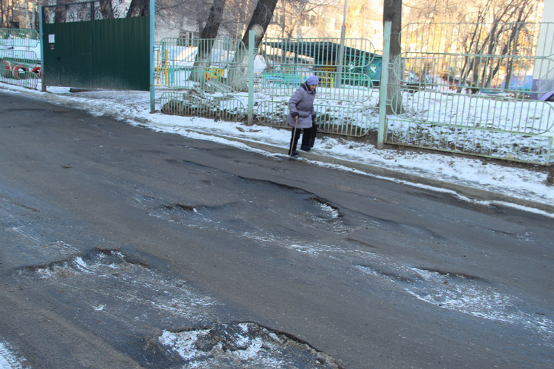 Отсутствие тротуаров приводит к тому, что проезжую часть вынуждены делить с автолюбителями и пешеходы, среди которых много пенсионеров, с трудом пробирающихся через обледеневшие ухабы по идущей под крутой уклон дороге. На автодорогу осуществляется выход с территории расположенных здесь поликлиники №6 и детского садика №109, посетители которых также вынуждены преодолевать обледеневшую проезжую часть. В любой момент очередной пешеход может упасть и скатиться под колеса автомобиля, также как и водитель на очередном ухабе рискует потерять управление транспортным средством, превращающимся в смертельный снаряд.