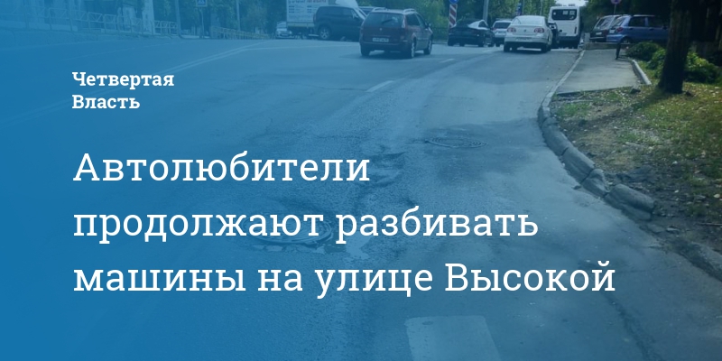 На улице Высокой, на пересечении с улицей Ароновой, водителям приходится маневрировать, объезжая просевший смотровой колодец и глубокую колею, покрывающуюся выбоинами.