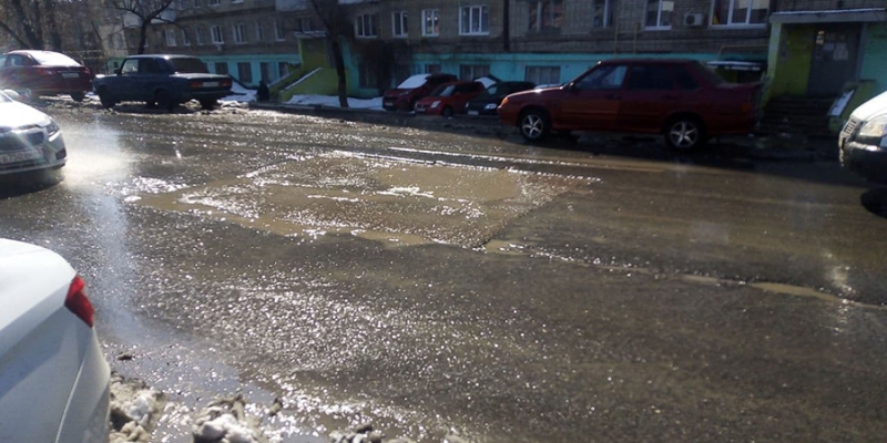 На улице Навашина, рядом с домом №3, просел участок восстановленного покрытия. В яме скапливается вода, а по краям латки образовались глубокие выбоины.