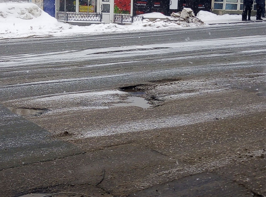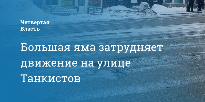 На улице Танкистов, на пересечении с улицей Безымянной, образовалась глубокая выбоина. Яма затрудняет движение автотранспорта по крайней левой полосе, по направлению в сторону улицы Навашина, с которой осуществляют поворот автомобили.
