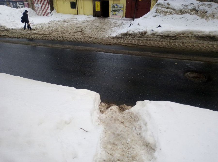 Отдельно необходимо упомянуть огромные глыбы льда и сосульки, свисающие с крыш над пешеходными зонами и подъездами. И неудивительно, что пешеходы чаще предпочитают движение по проезжей части, чем по утоптанным, но проходящим под крышами тротуарам.