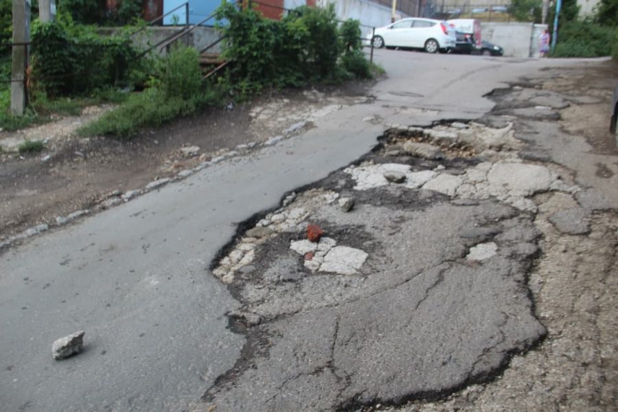 На месте выбоин появились глубокие промоины, в которых может застрять автомобиль. Не выдерживает даже бетон, залитый в основание дороги. При этом исправлять ситуацию и восстанавливать безопасность проезда не спешат, несколько многоквартирных домов в ближайшее время могут оказать и вовсе отрезанными от остального города.