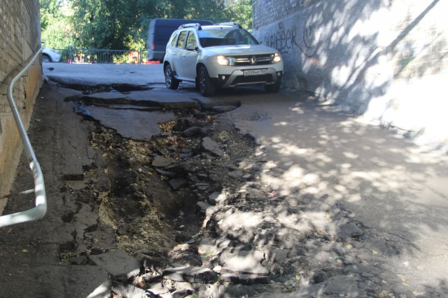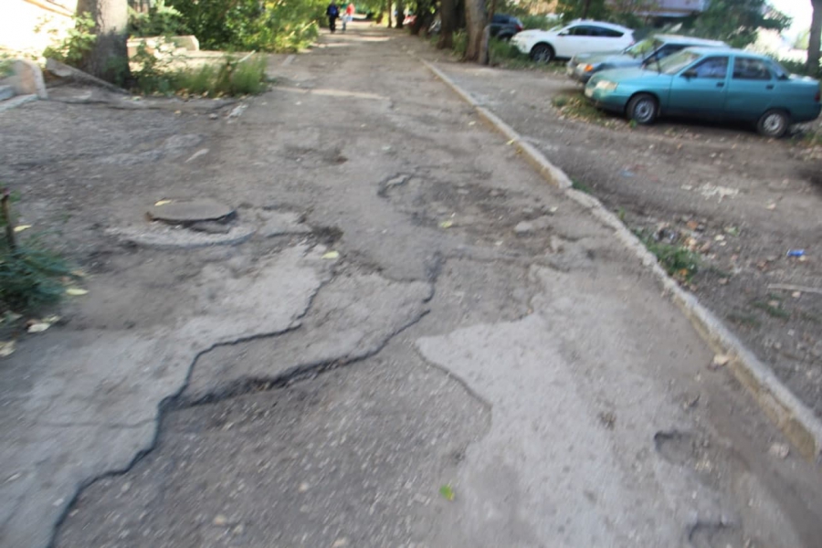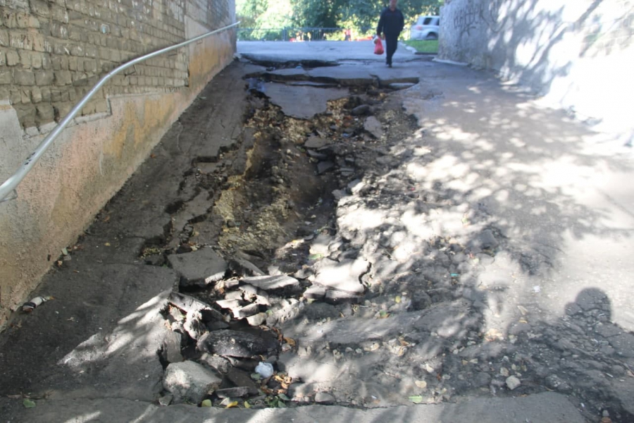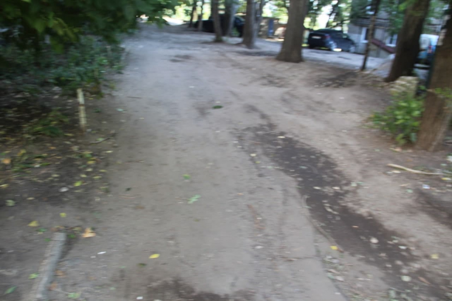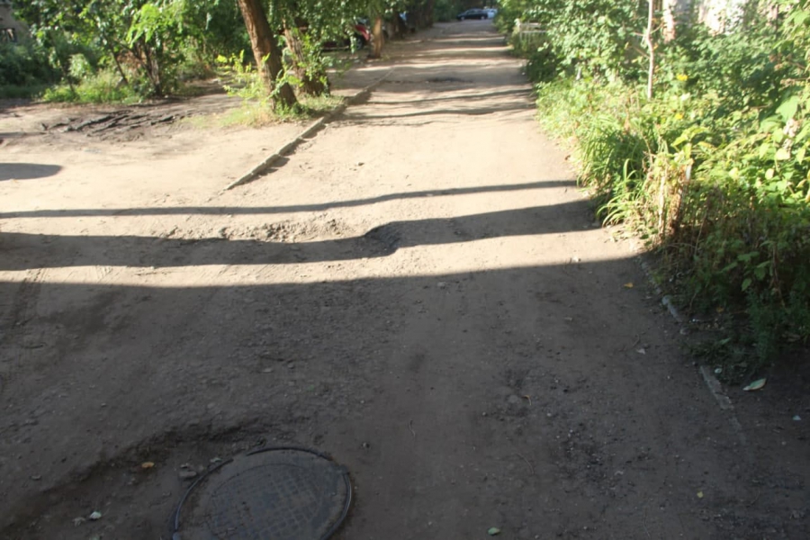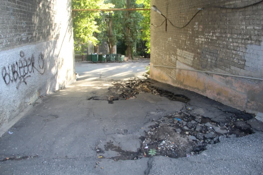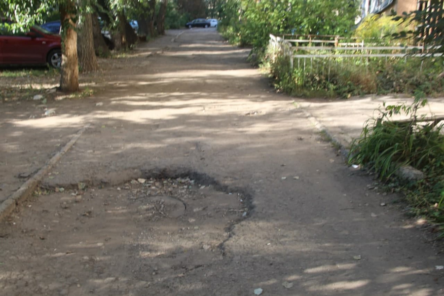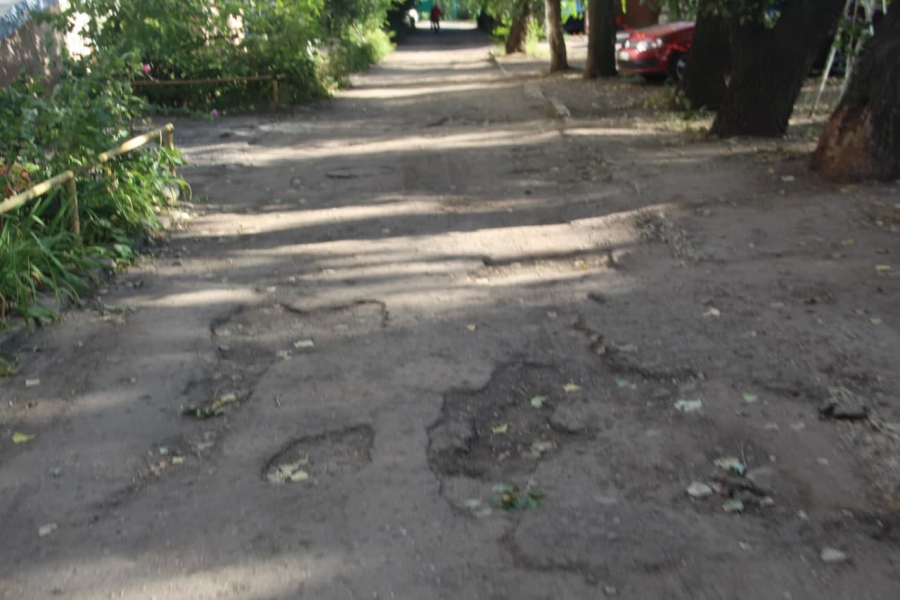 В редакцию «Дорожного контроля» обратился житель Кировского района, пожаловавшийся на разбитый двор вдоль домов №19 и 19а по улице Высокой.