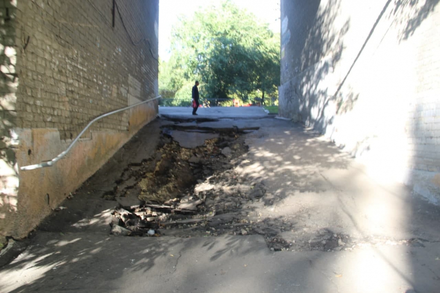 Не только дворы у домов №19 и 19а по улице Высокой могут похвастаться разрухой. Рядом с ними соседствует дом №6, во двор которого полностью размыт. Только отчаянные водители внедорожников рискуют преодолевать препятствие, рискуя опрокинуть машину в яму. При этом для незнакомого с особенностями ландшафта автолюбителя разрушенная дорога становится неожиданным препятствием, и ему приходится выезжать задним ходом на оживленную магистраль.