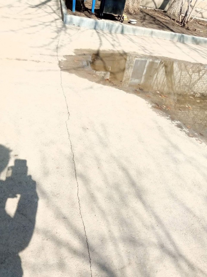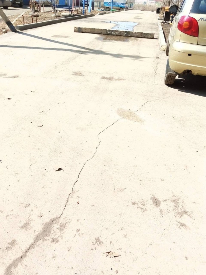 Жители города Ершова Саратовской области сообщили о появлении трещин на отремонтированных дворах по улице Федина.