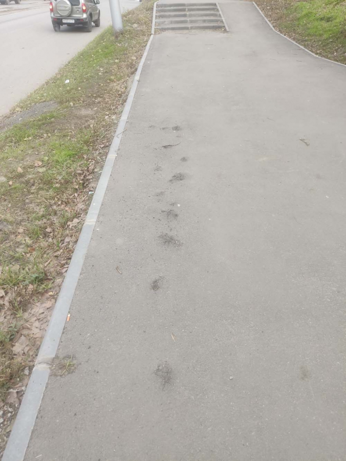 Отремонтированный участок пешеходной зоны по Ново-Астраханскому шоссе вдоль трамвайного депо сплошь покрыт буграми и трещинами. Тротуар от Усиевича, 7 до Пожарного проезда был введен в эксплуатацию в прошлом году. По всей видимости, при подготовке основания подрядчик не зачистил корневую систему деревьев, и, как следствие, — теперь корневая система зачищает пешеходную зону от асфальта.