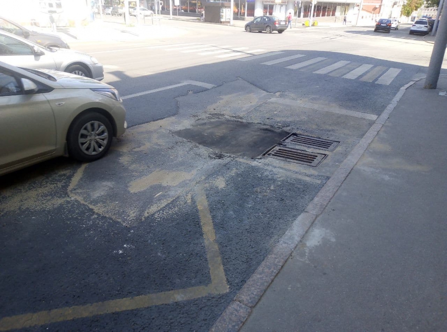 Судя по латкам, просадку неоднократно пытались устранить, но полностью привести проезжую часть в нормативное состояние не удалось.