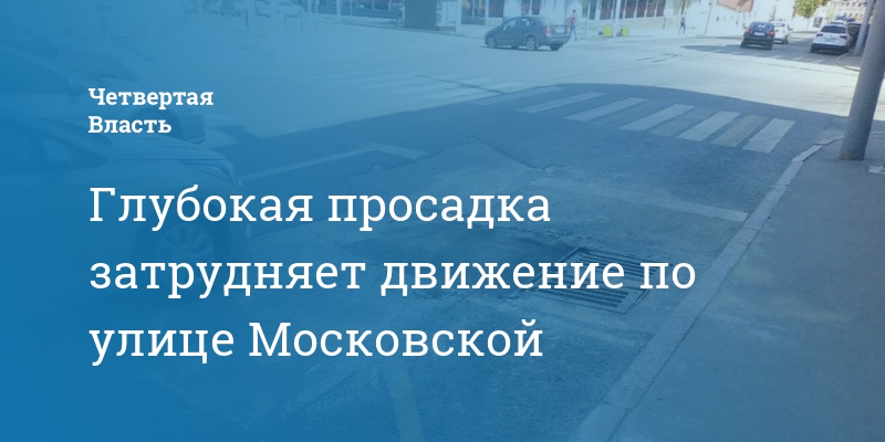 На улице Московской, перед пересечением с улицей Чернышевского, образовалась глубокая просадка.