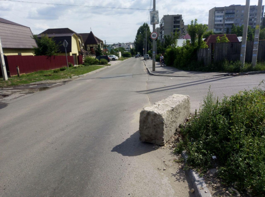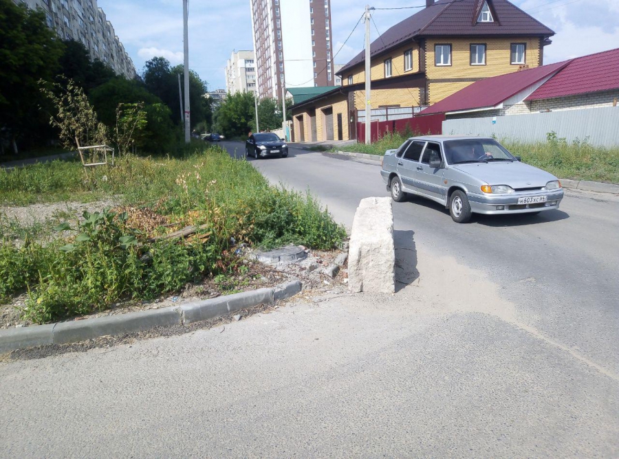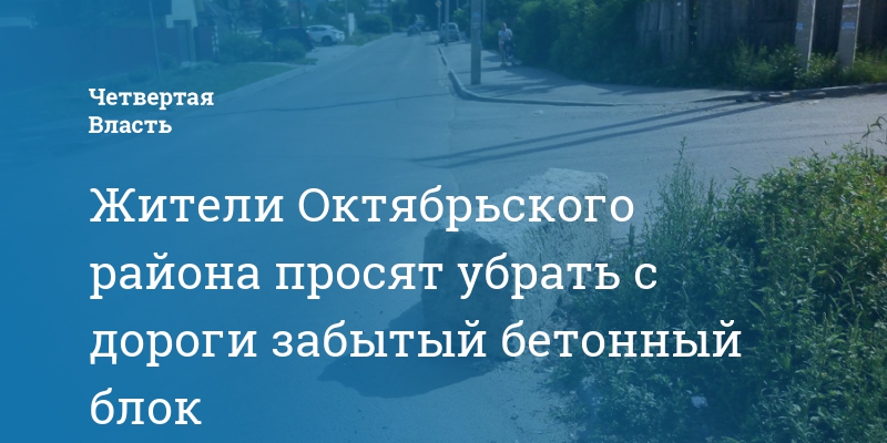 Жители Октябрьского района просят убрать с дороги забытый бетонный блок