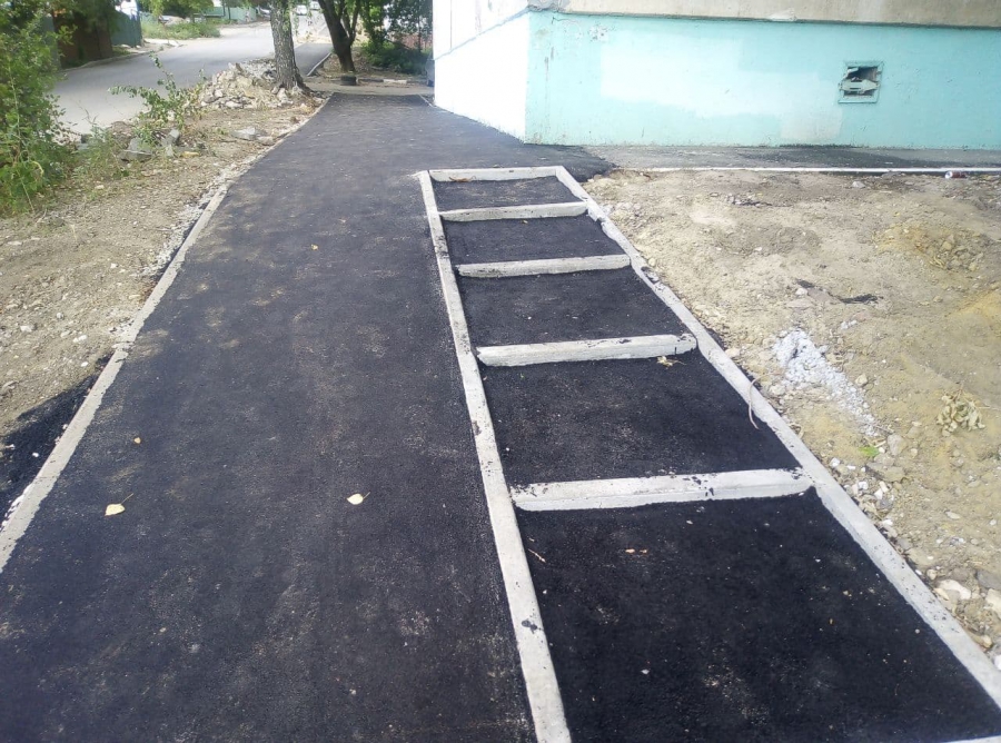 В остальном тротуар, идущий под сильный уклон, дорожникам удалось отремонтировать вполне достойно, кроме устроенных лестниц. На них рабочим не удалось уплотнить должным образом покрытие, о чем свидетельствует вышелушивание асфальта у дома №10.