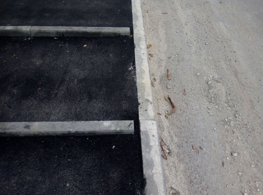 Покрытие на лестнице у дома №11а уплотнили получше, но наблюдаются проблемы с бордюром, между бортовыми камнями оставили значительные зазоры, а два из них и вовсе треснули.