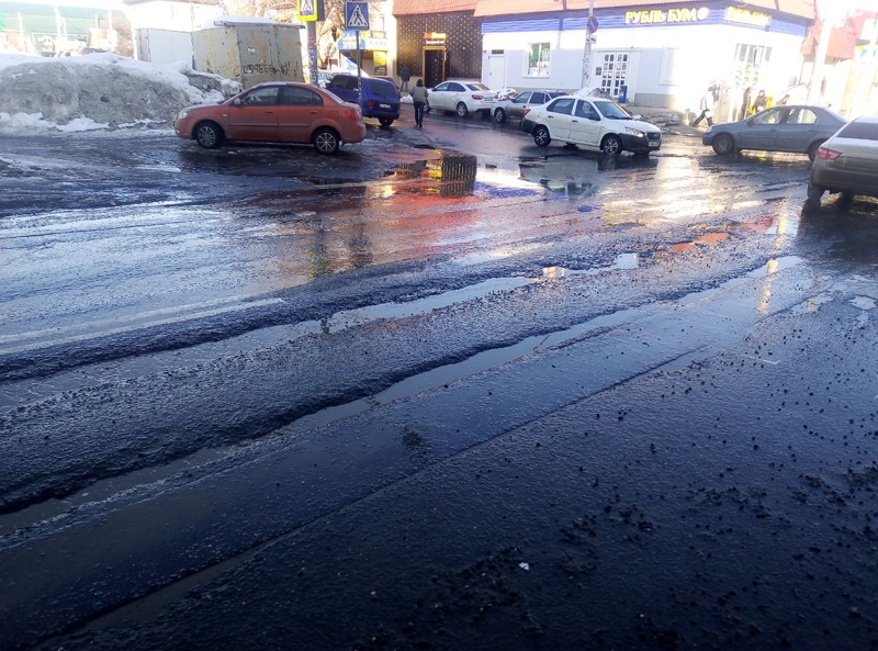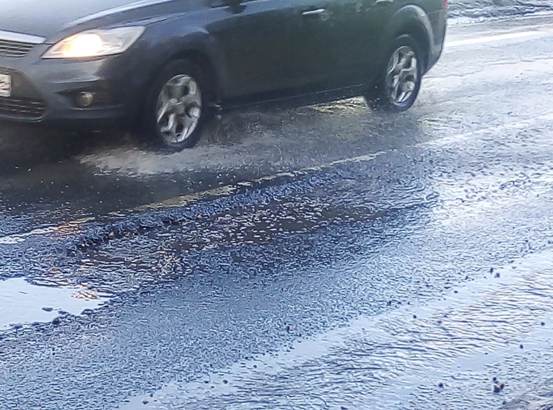 Ямы скрыты водой и труднозаметны водителям, при этом они значительно затрудняют движение и мешают маневрированию.