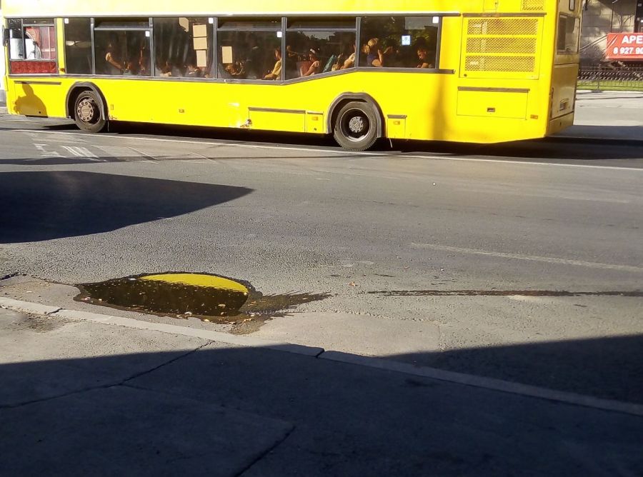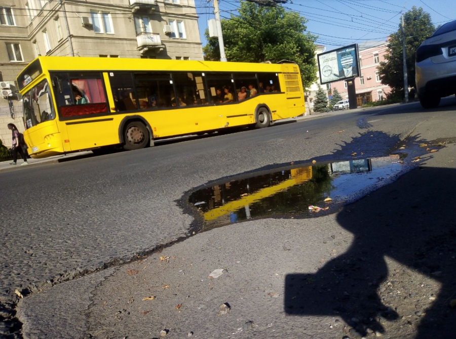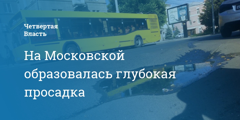 На улице Московской, рядом с остановкой «Улица Астраханская», образовалась глубокая просадка, занявшая всю крайнюю полосу дороги.