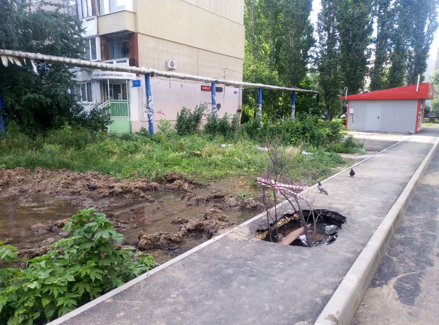 В результате коммунальной аварии у дома №39а оказалось размыто основание пешеходной зоны, что привело к образованию провала. Как уточнили сотрудники энгельсской администрации, аварийную трубу уже заменили, а восстановлением пешеходной зоны будет заниматься подрядчик. При этом, судя по размерам коммунального болота, основание необходимо менять на значительном участке пешеходной зоны.