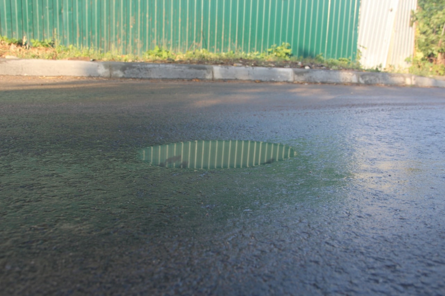 Особенно это заметно после дождя, который демаскирует даже незначительные просадки, наиболее часто встречающиеся рядом со смотровыми колодцами.
