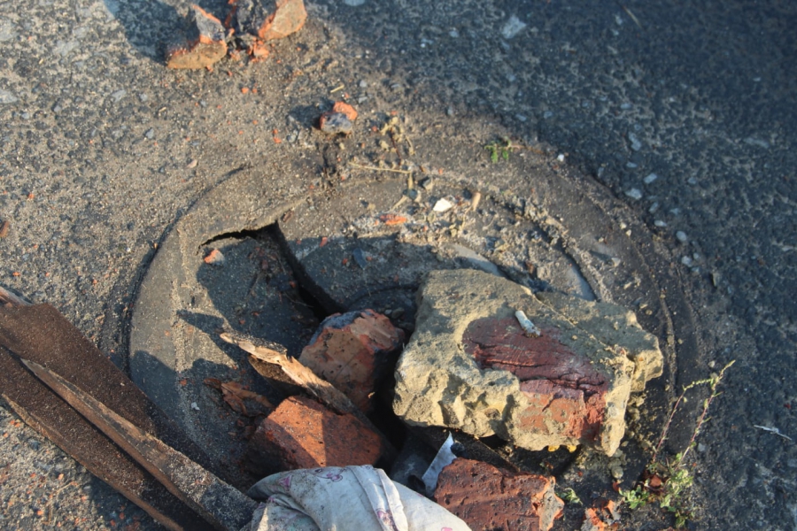 Сами крышки люков либо разрушились, либо уже вогнуты и грозят провалиться в любой момент.