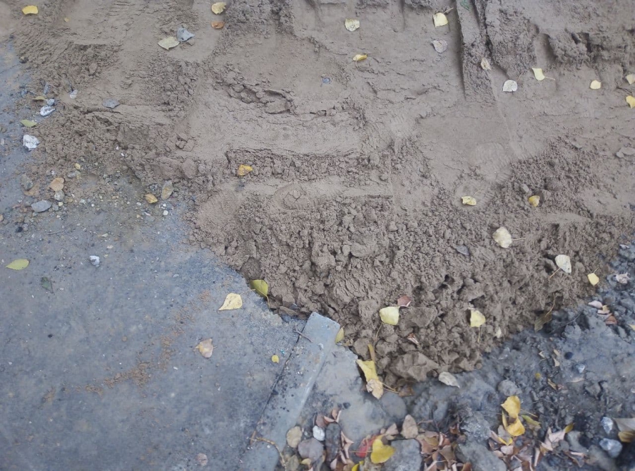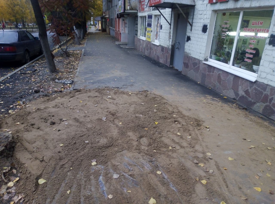 У дома №21 появился коммунальный раскоп, который после засыпали песком. Работ по восстановлению покрытия в том виде, в котором его оставили дорожники, не ведется. И не исключено, что при таком подходе на этом месте после восстановления асфальта будут появляться просадки.