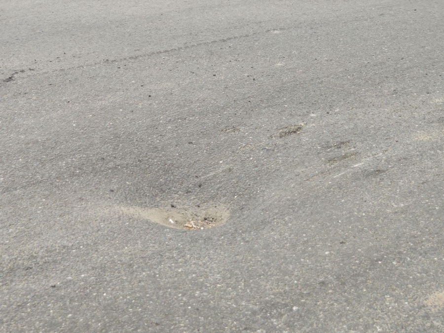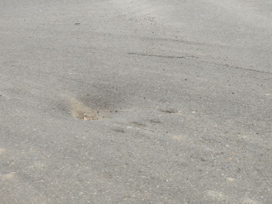 По краям ямы на асфальте остались следы от соприкосновения с днищами автомобилей, которые неудачно заехали в просадку.