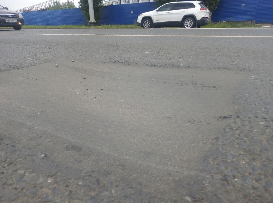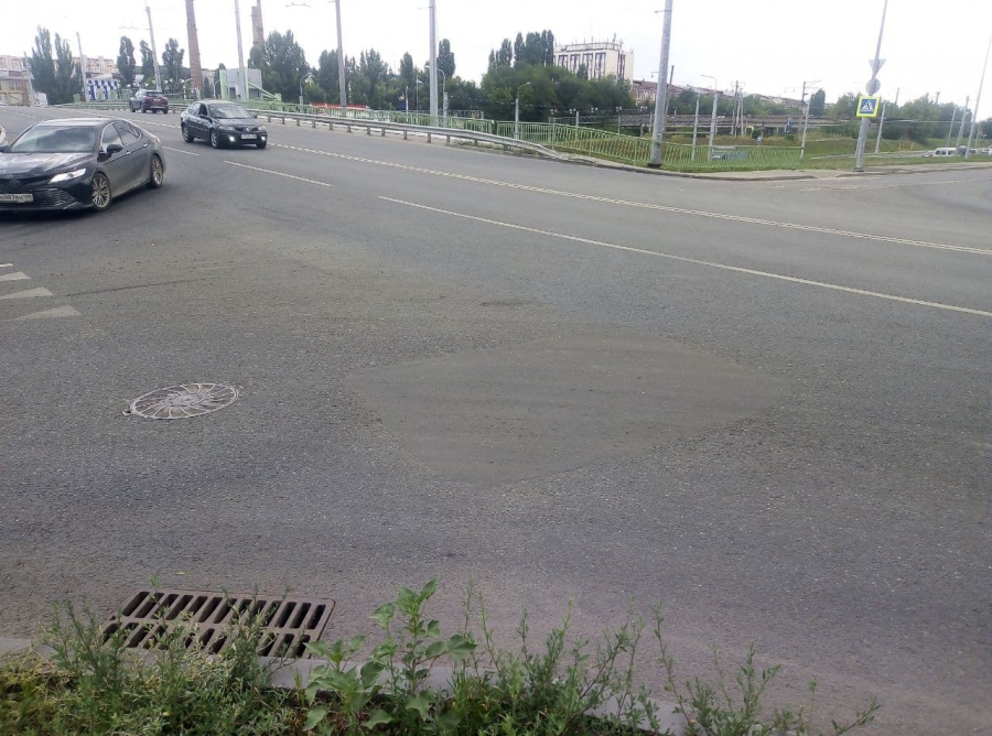 Глубокая яма находится у дождеприемника перед пересечением с проспектом 50 лет Октября, затрудняя движение по крайней правой полосе. Похожее разрушение появилось и на противоположной стороне моста при повороте с малой дороги Шехурдина на 2-ю Прокатную, у дома №64. Судя по следам, обе ямы уже пытались устранить ямочным ремонтом, но и эти латки начали проседать.