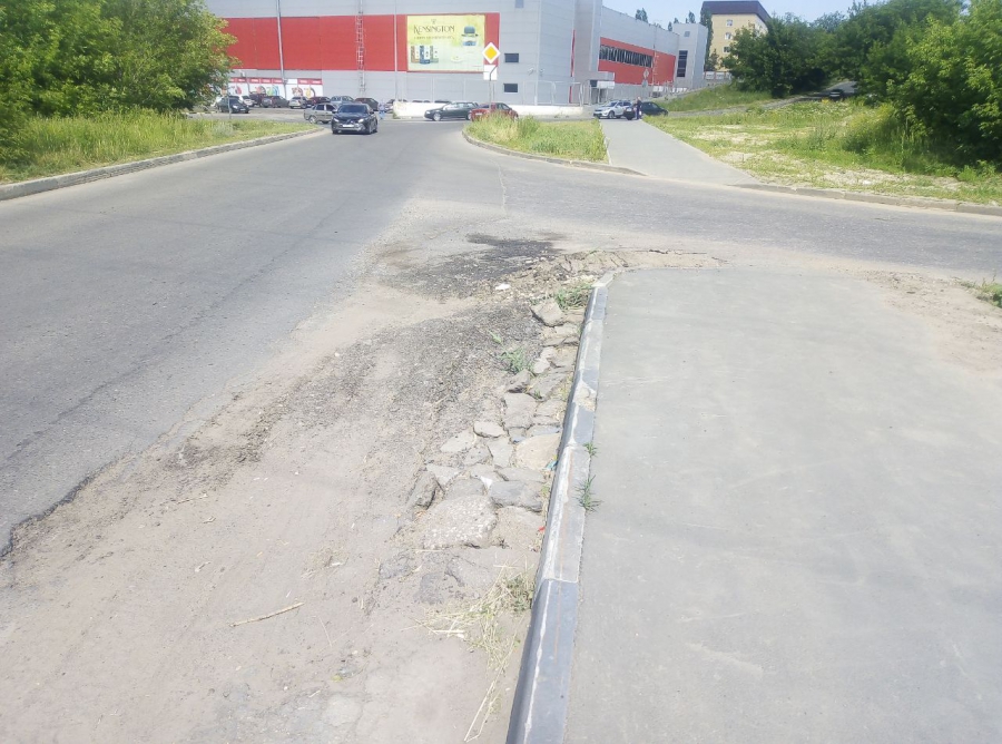 На улице Блинова перед пересечением с Перспективной одна из полос для движения оказалась полностью разрушенной.