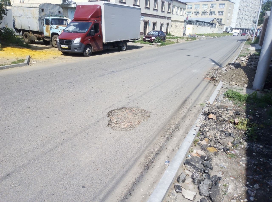 На отремонтированной в прошлом году улице Крайней, рядом с пересечением с улицей Соколовой, появилась выбоина.