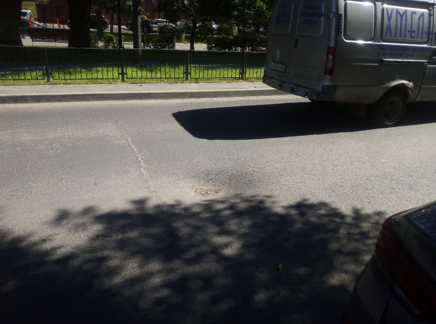 На улице Рахова у дома №181 образовалась глубокая просадка по центру проезжей части.