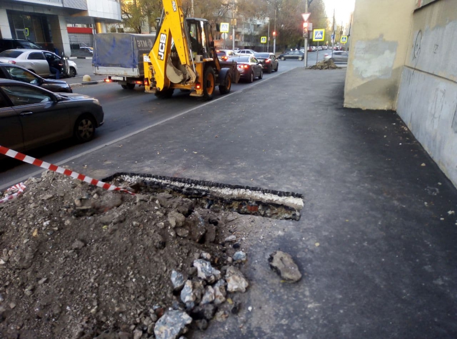 Вскрышные работы на отремонтированных тротуарах становятся традицией Саратова. И ставит вопрос о качественном восстановлении покрытия на месте раскопов.