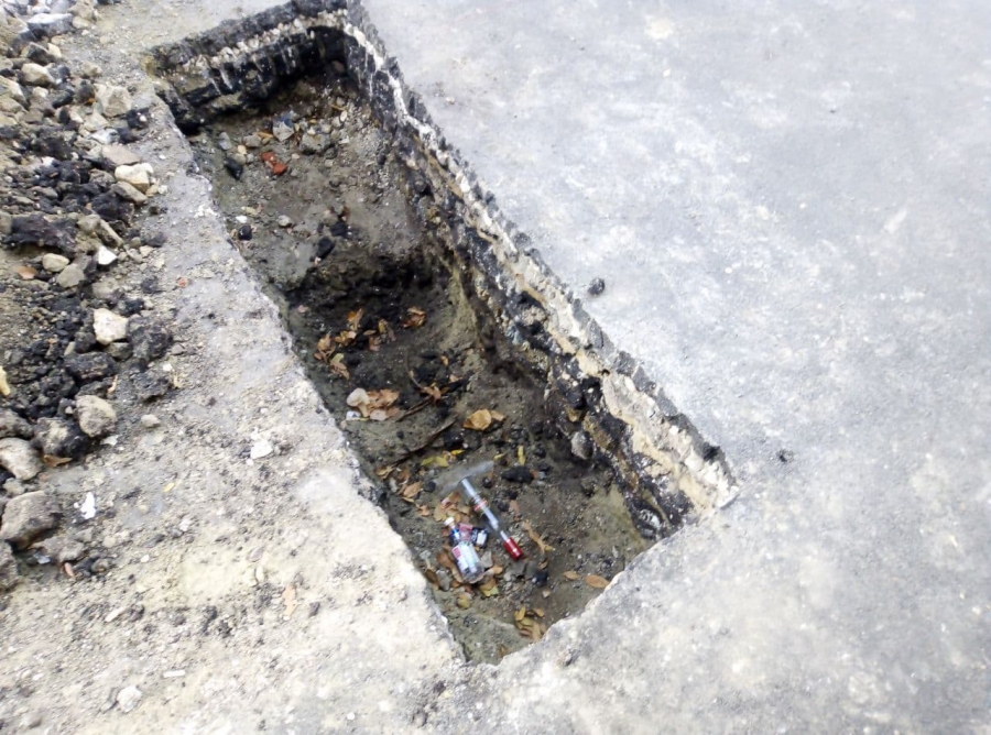 Примечательно, что ремонт этой пешеходной зоны был закончен всего несколько месяцев назад. Раскопы занимают всю ширину тротуара, заставляя пешеходов выходить на дорогу.