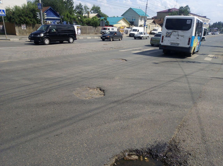 На улице Танкистов, на пересечении с улицей Крайней, расположились ненормативные смотровые колодцы. Один из них просел, вокруг другого образовалась выбоина.