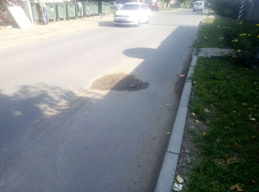 По соседству с ненормативным колодцем, на той же полосе, находится еще одно препятствие - просадка, так же мешающая проезду автотранспорта.