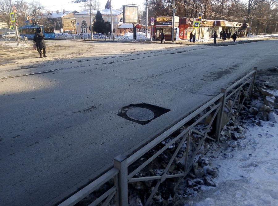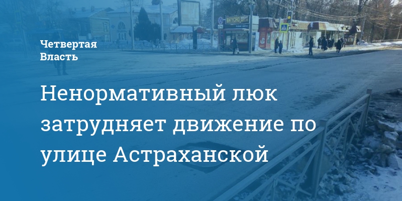 На улице Астраханской, перед пересечением с улицей Московской, расположился значительно заглубленный смотровой колодец, который затрудняет движение в сторону центра по крайней правой полосе.