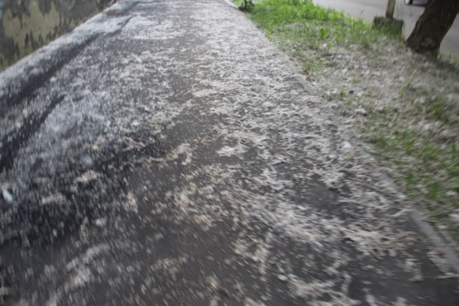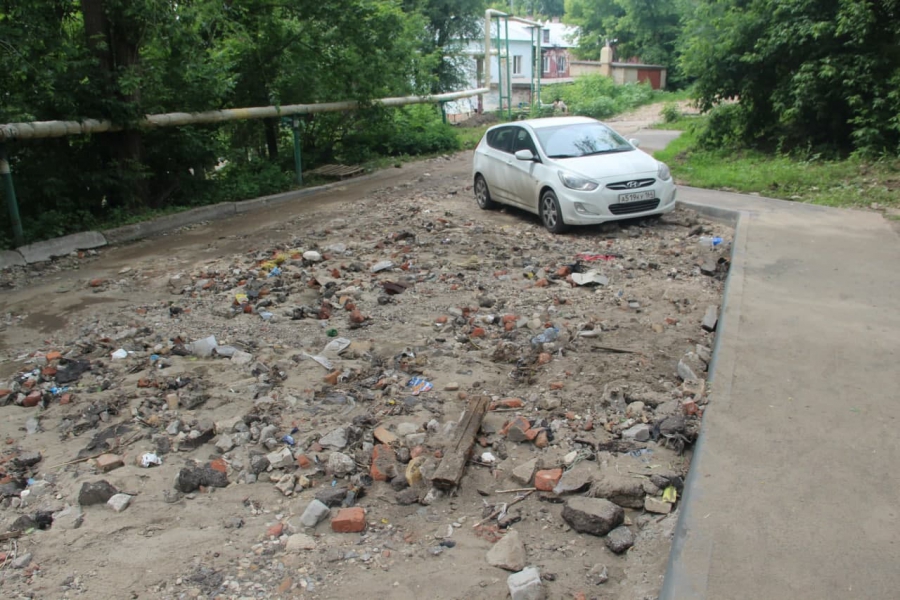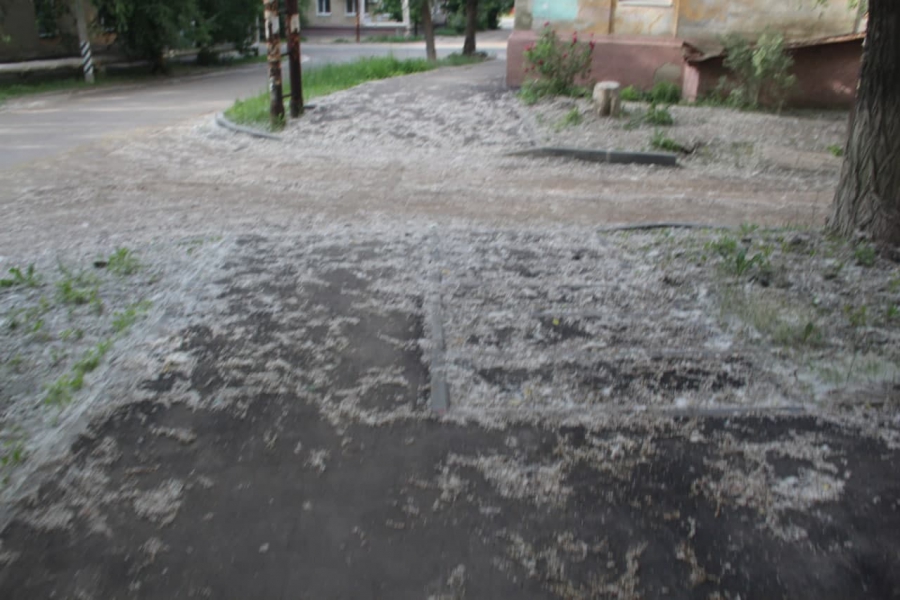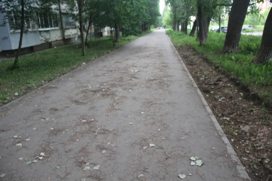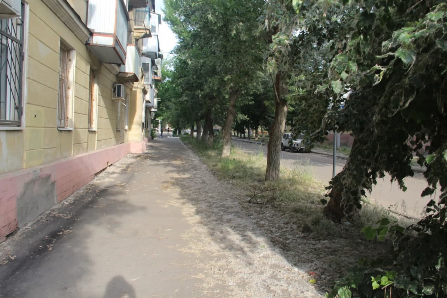 Асфальт зарастает грязью, покрыт слоем тополиного пуха, и передвигаться по нему, минимум, неприятно. Не вывезенный строительный мусор и кучи веток после обрезки дополняют картину, создавая ощущение заброшенности и ненужности.