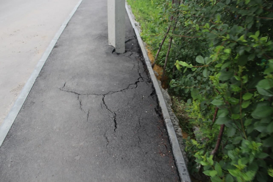 Теперь же, по прошествии полугода, на тротуаре появились разрушения, которые и вовсе делают передвижение по нему небезопасным. Пешеходная дорожка расползается, появились трещины и просадки, отходит бортовой камень. Такими темпами от пешеходной дорожки через останутся лишь остатки асфальта да торчащий местами бортовой камень.
