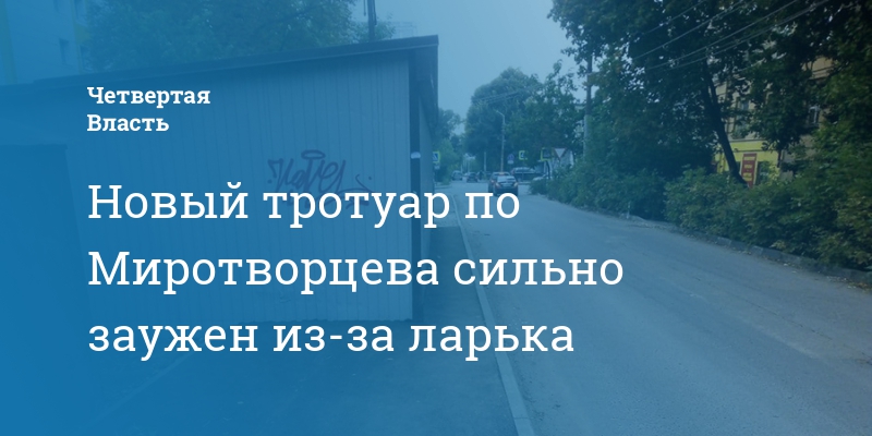 Новый тротуар по Миротворцева сильно заужен из-за ларька