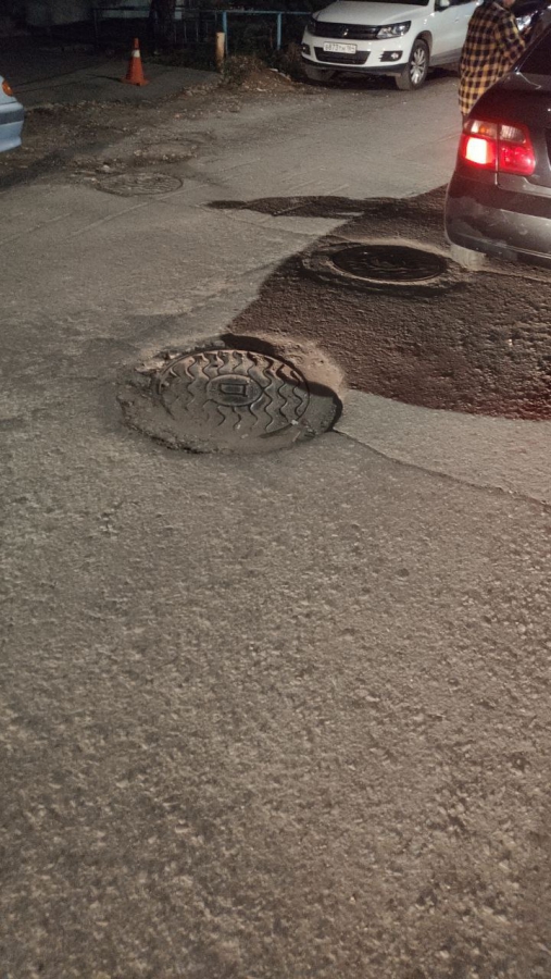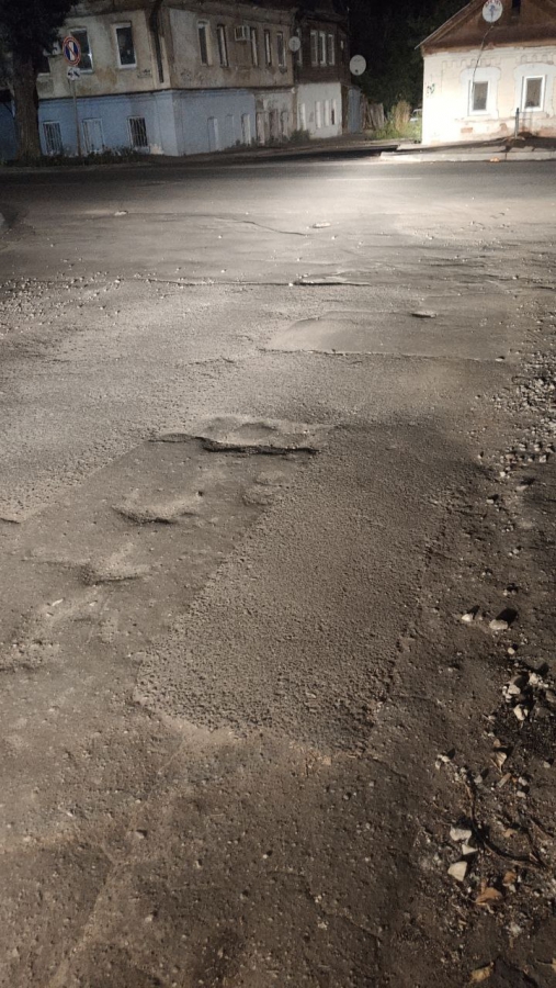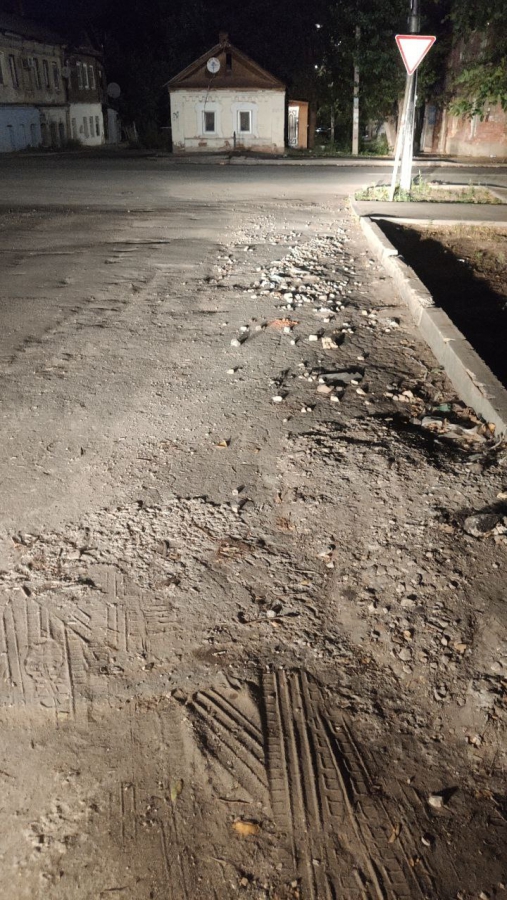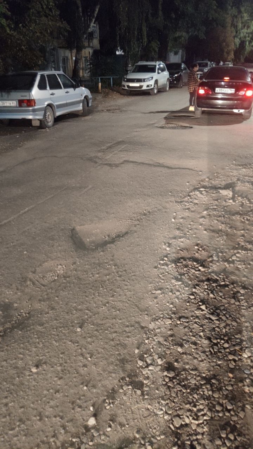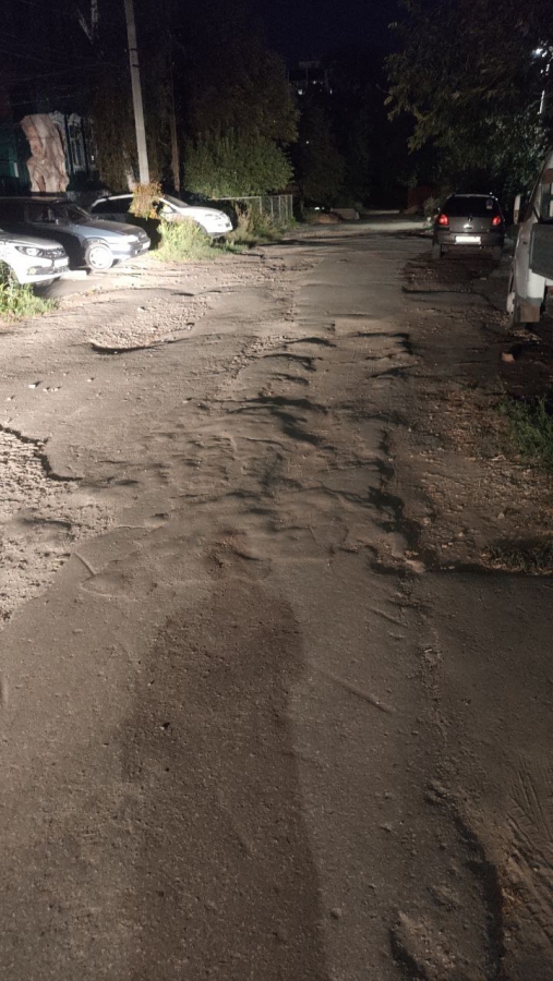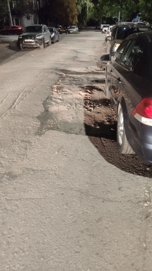 Дорога пребывает в ненормативном состоянии на всем протяжении этой небольшой улицы, расположенной в центре столицы региона. Начиная от улицы Кутякова, в сторону Глебучева оврага нет ни одного ровного участка асфальта. Повсеместно водителям приходится маневрировать, объезжая просадки, выбоины, ненормативные смотровые колодцы, а также груды щебня и другого мусора.