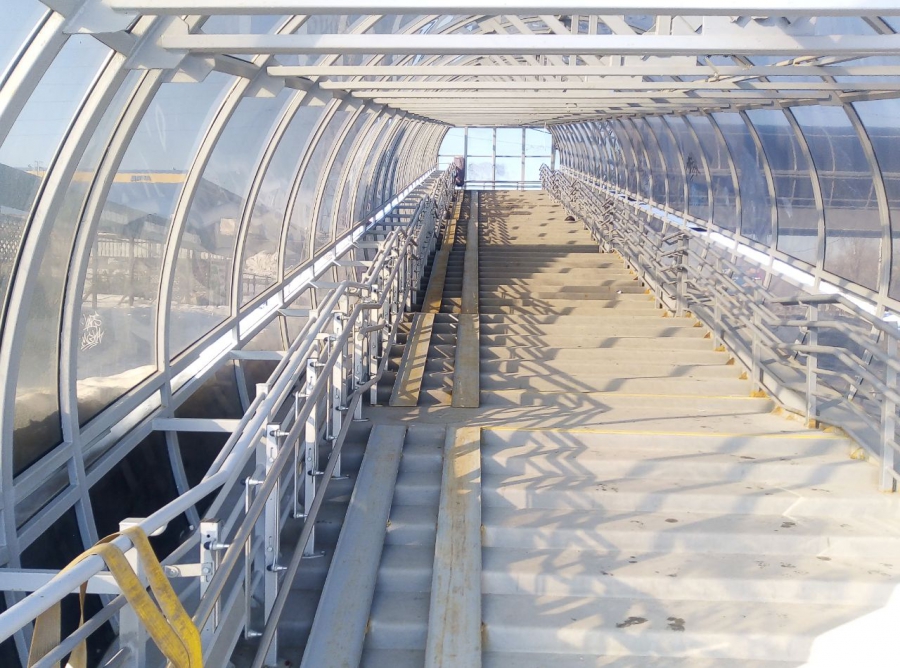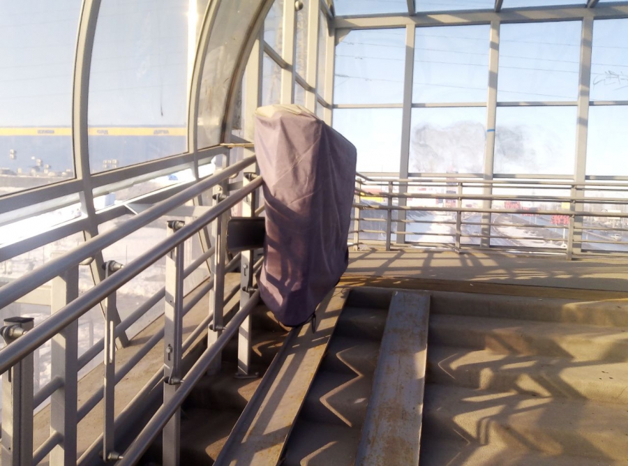 Данное сооружение должно было свести на нет ДТП с участием пешеходов в районе торгового центра «Хеппи Молл». Для маломобильных групп граждан на переходе были установлены платформы наклонного перемещения, обошедшиеся бюджету в 3 млн рублей, но еще в 2019 году саратовцы обратили внимание, что техническая диковинка так и стоит в зачехленном виде. Прошло еще три года, но ситуация никак не изменилась. Прогресс в доступности городской среды в Саратове остался лишь на бумаге и неизвестно, заработают ли когда-либо данные подъемники.